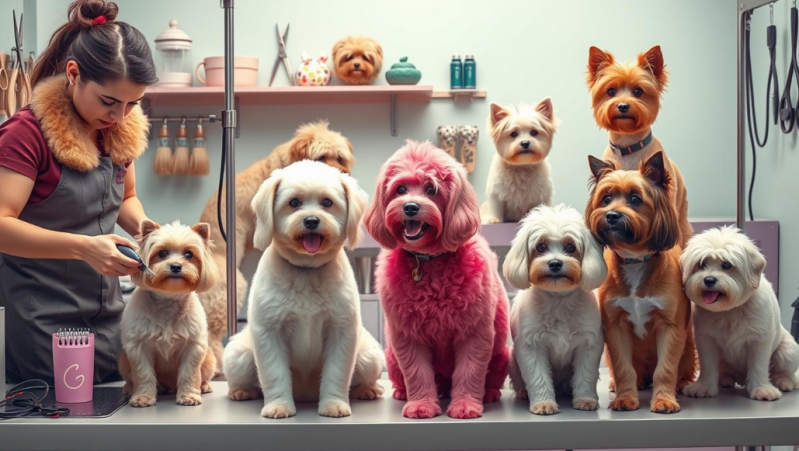 In the world of pup pampering, new doggy hairdo trends are changing grooming. Owners are now giving their dogs cool cuts and bright colors. This turns their pets into true canine fashion icons.