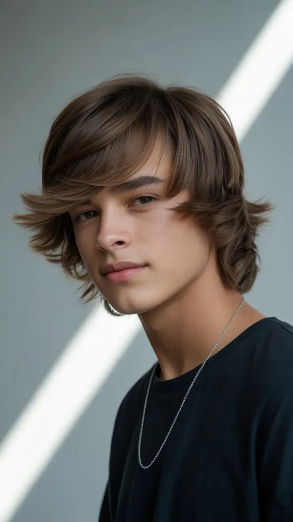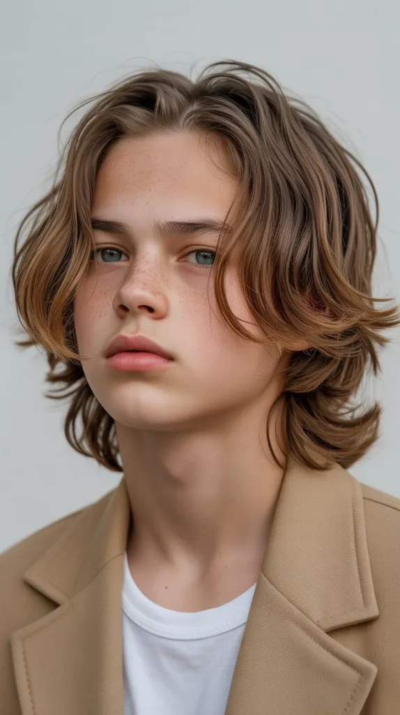 This one’s basically: “throw on a hoodie, grab your board, let’s go.” Long layers, shaggy texture, a little messy on purpose. Perfect if your kid lives in beanies half the year. Effortless… but still looks like effort went in.
