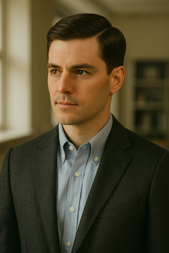 The side part is timeless and screams sophistication. This fall, it’s making a comeback in men’s fashion circles tied to the “Old Money” look.