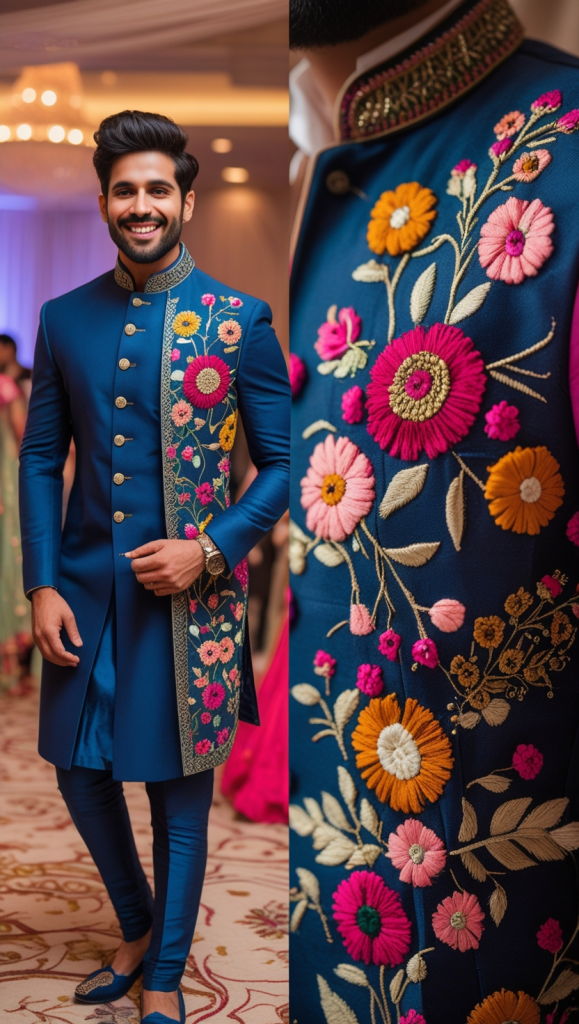 A Bandhgala or Jodhpuri suit brings regal sophistication to receptions.